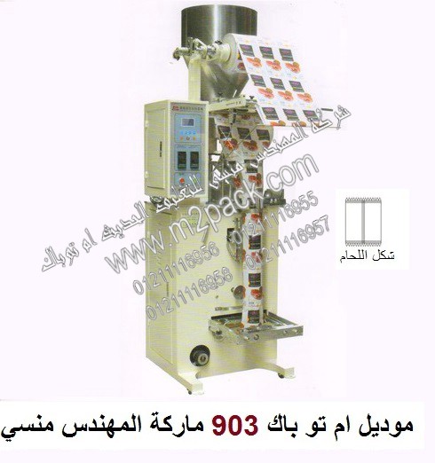 ماكينة التعبئة والتغليف الاتوماتيكية التي تقوم باللحام من الظهر ذو منصة عالية موديل ام تو باك 903 حتي واحد كيلو ماركة المهندس منسي